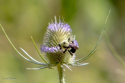 As we passed through St Louis, the climate was clearly becoming dryer. Milkweed gave way to teasel (Dipsacus fullonum), a curious plant with a dome-shaped flower cluster that blooms in two rings from top down and bottom up at same time. Then crossing Missouri, the trees all but disappeared, surviving only along water courses. To what extent this was due to dry climate or foraging livestock was unclear.