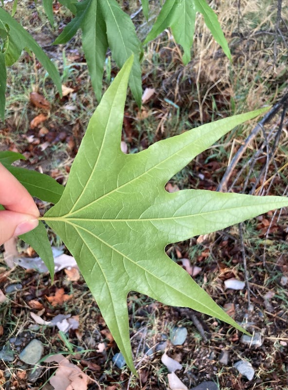 Tree of heaven (Ailanthus altissima)—the smelly, fast-growing invasive from East Asia—was the major successional tree initially, but as we entered Indiana, it gave way somewhat to sycamore (Patanus), noticeable from the car with its sunburst-shaped leaves.