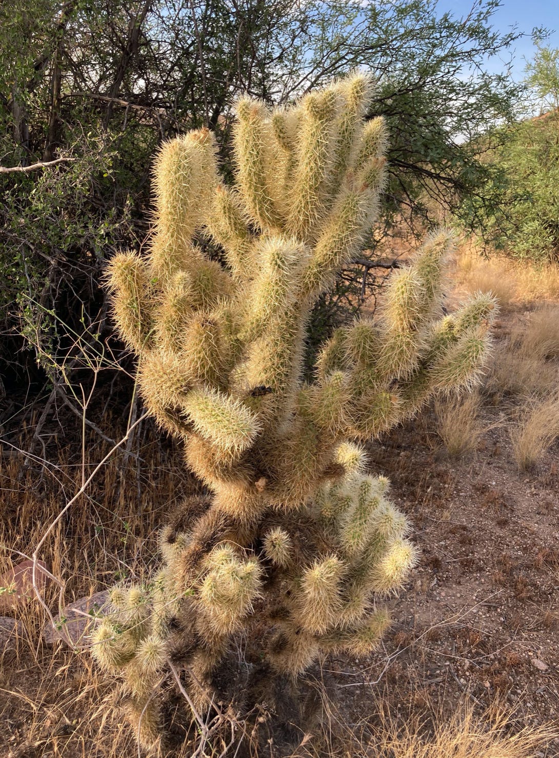 At this point the climate zones change very rapidly. It seems that every hill brought a somewhat different composition of thorny, shrubby vegetation, but at 80 mph all we could pick out was the teddybear cholla—the most widespread if not the most famous indicator species of the American desert.